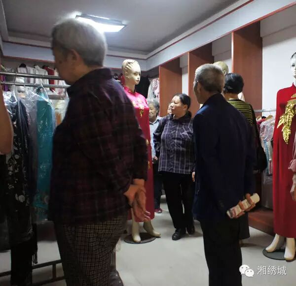 老人们在参观欣赏湘绣旗袍
