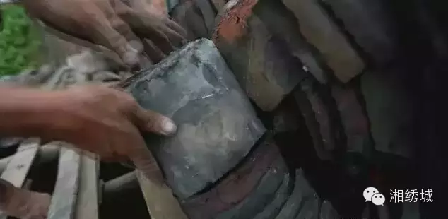 (湖南省永兴县湘阴渡镇翻瓦匠 李江群)两边钉子要压紧,放椽皮,不能空瓦,空瓦空不得,瓦烂掉了,椽皮就会掉了。